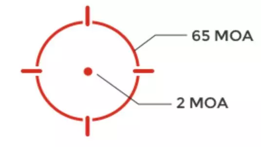 - Multiple Reticle System™ (MRS) réticules interchangeables : 65 MOA circle et 2 MOA dot , 2 MOA Dot
