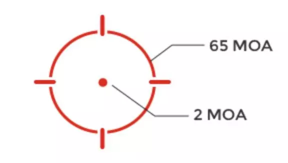 - Réticule : 2 MOA Dot et 65 MOA Circle rouge