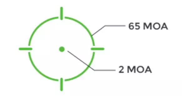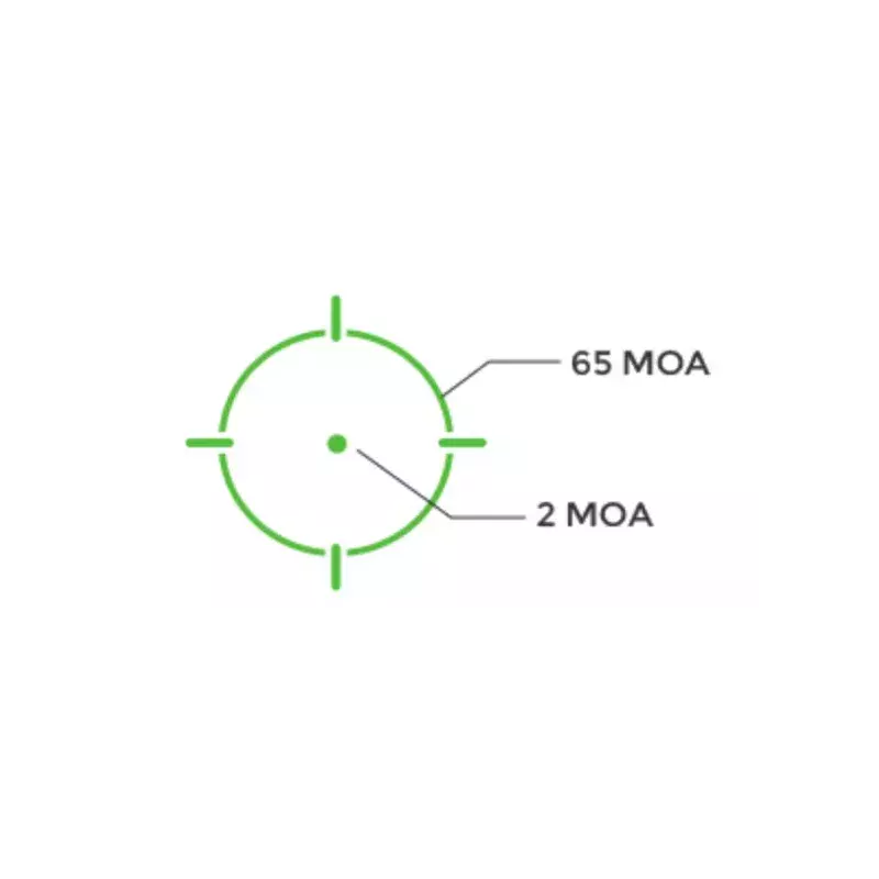 - Multiple Reticle System™ (MRS) réticules interchangeables : 65 MOA circle et 2 MOA dot , 2 MOA Dot