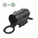 Le réticule est de 2 MOA Dot et 65 MOA vert. Le MRS vous permet de commuter entre le 2 MOA Dot ou 65 MOA et 2 MOA Dot. Vous pouvez régler la luminosité du réticule sur 12 intensités différentes dont 2 en vision nocturne. Le diamètre de l'optique est de 30mm.