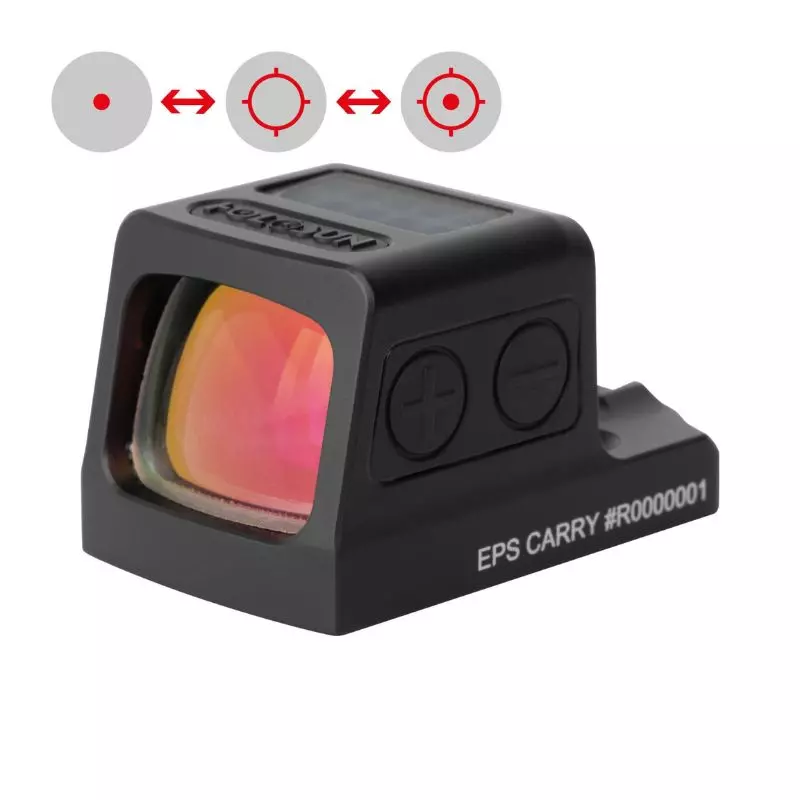 L'EPS CARRY rouge MRS est un viseur reflex pour pistolets subcompacts, il vous permet de switcher entre 3 réticules rouges différents ; un point 2MOA, un circulaire 32MOA et un réticule qui combine point 2MOA et cercle 32MOA. Vous pouvez commuter rapidement et régler votre luminosité grâce aux deux larges boutons +/- latéraux.