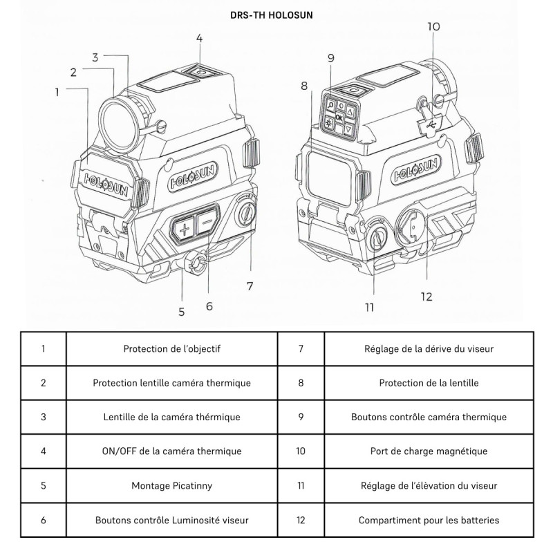 - Utilisation commune ou indépendantes de la caméra thermique et du viseur.