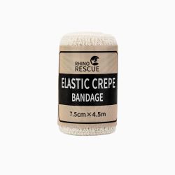Bandage élastique en crêpe Rhino Rescue. Fabriqué à partir d'un mélange de coton et d'élasthanne, ce bandage offre un ajustement confortable, un soutien et une compression uniforme couplée à une bonne respirabilité.