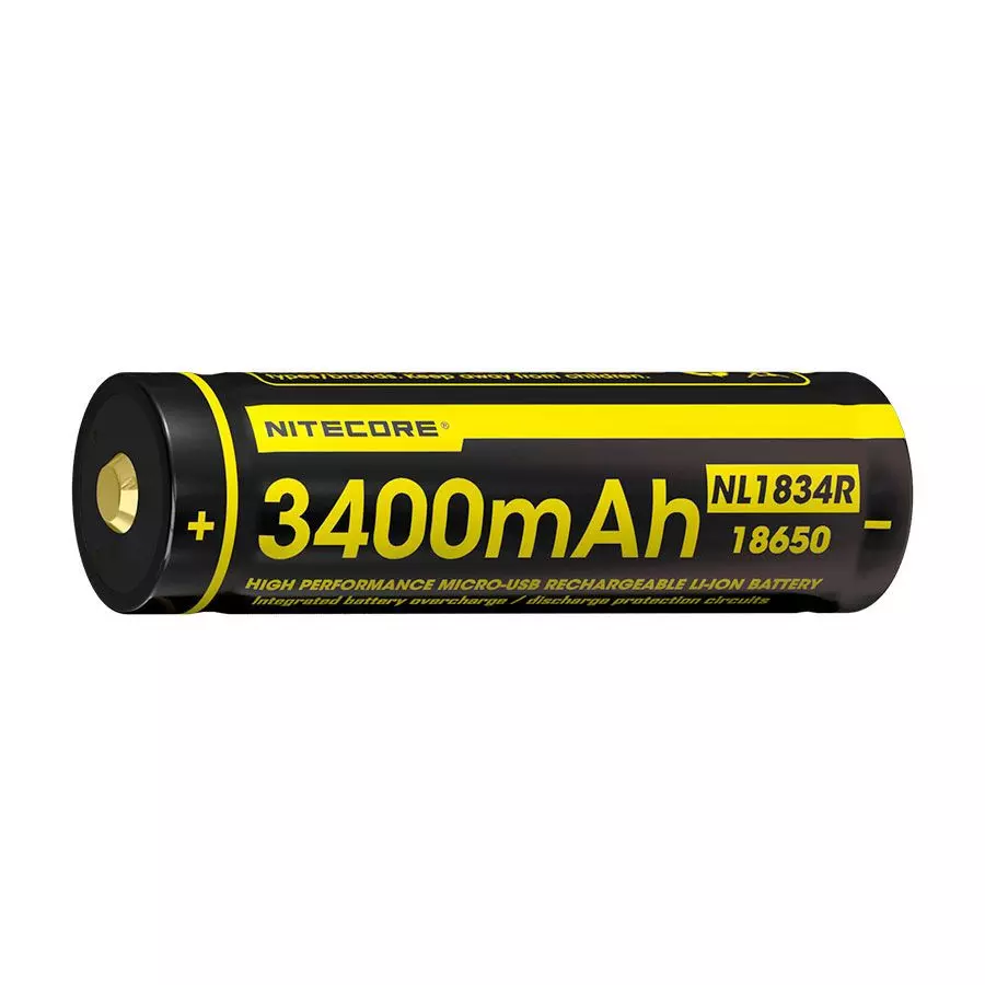 La batterie Nitecore NL1834R est une batterie 18650 de 3400mAh avec un chargeur intégré, ainsi vous pouvez la recharger sans un chargeur externe supplémentaire. Il suffit d'utilser un câble USB vers micro USB vendu séparément. Elle peut évidement être rechargée dans un chargeur traditionnel.