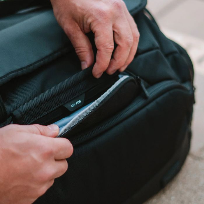 - Pochette pour clés Faraday Offgrid incluse dans la poche à accès rapide (lié par élastique).