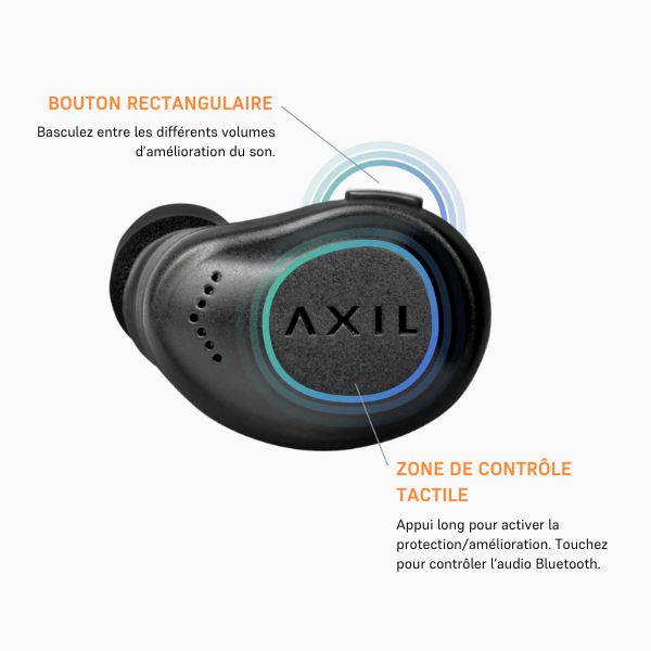 Les XCOR PRO Axil disposent de deux boutons de gestion des modes directement sur le corps des écouteurs.