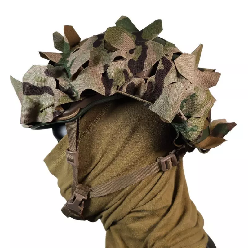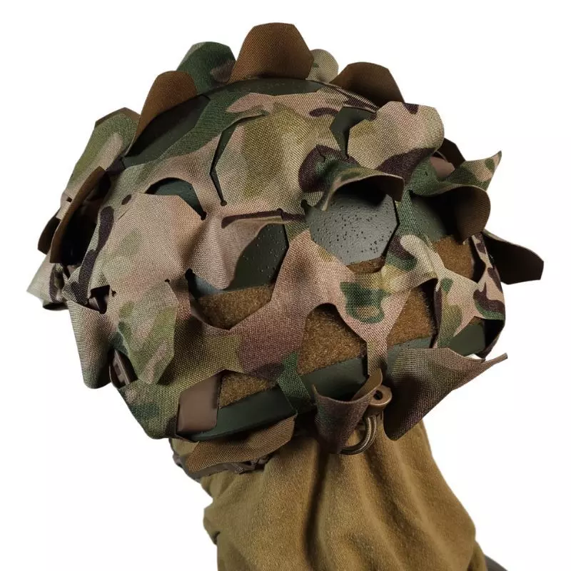 Ce couvre-casque 3D se fixe à l’aide d'élastiques, ce qui lui permet de s'ajuster à tous les types de casques, qu’ils soient balistiques ou non.