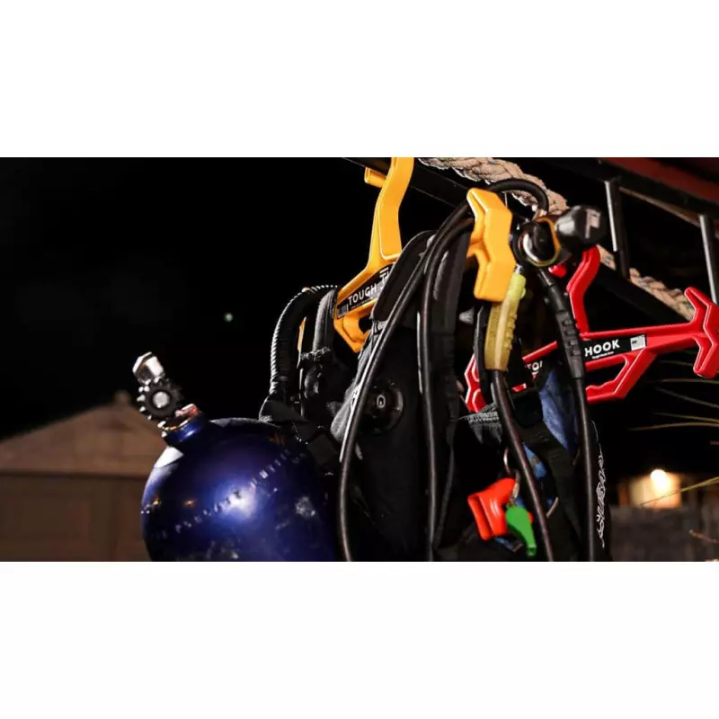 Fabriqué aux États-Unis 🇺🇸 avec des matériaux robustes, c'est un accessoire indispensable pour les professionnels. Simplifiez la gestion de votre équipement avec Tough Hook.