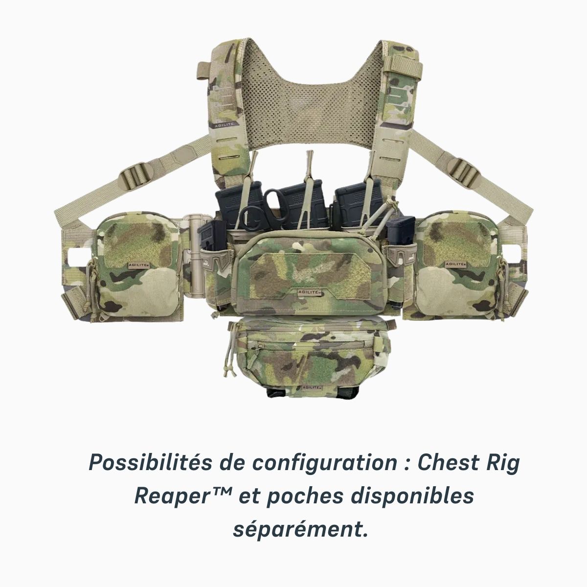 L'extension Warfighter Wings permet d'augmenter la zone d'emport et de personnalisation sur le Chest Reaper Rig Agilite. Le système Warfighter wings est livré avec une boucle d'ouverture rapide, permettant d'ôter rapidement le Reaper Chest Rig.
