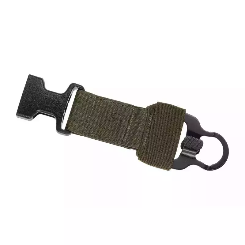 Boucle crochet Clawgear à fixer sur vos sangles ou autre équipement muni d'une boucle type Quick Buckle mâle. Le crochet est recouvert d'un manchon élastique pour éviter les rayures.