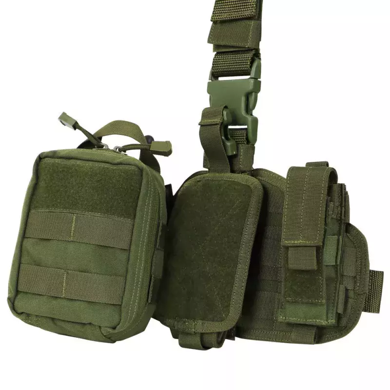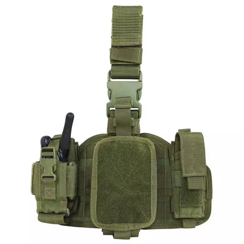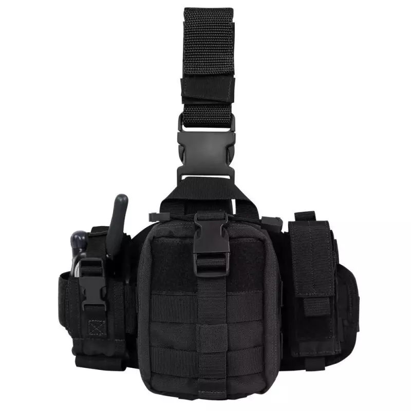 Cette plateforme de cuisse est équipée de la poche médicale à dégagement rapide EMT, d'un porte-garrot ou radio et d'une poche à accessoires (chargeurs, lampe, etc), elles sont amovibles, vous pouvez donc changer de configuration selon vos besoins.