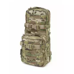 Emplacement interieur pour y mettre une poche d'eau. De nombreux passants MOLLE en exterieur pour attacher d'autres poches.