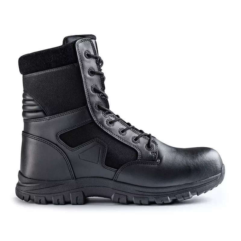 - Conception global de la tige : ,extérieur en cuir souple ACTION LEATHER, tissu polyester HRF 1000D hautement résistant, doublure intérieure 100% mesh matelassée, œillets cousus et renforcés, zip YKK® avec bande auto-agrippante de protection.