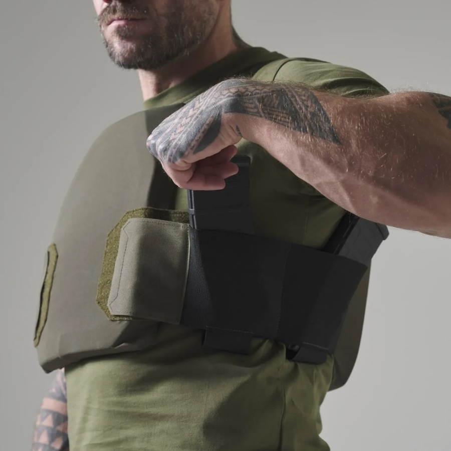 Fabriqué en VersaStretch®, ce porte-plaques épouse la forme du corps et des plaques pour offrir un maintien optimal tout en conservant une excellente liberté de mouvement. Son cummerbund élastique intègre des poches pour chargeurs pistolet ou carabine, permettant d’emporter l’essentiel sans compromettre la discrétion.