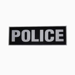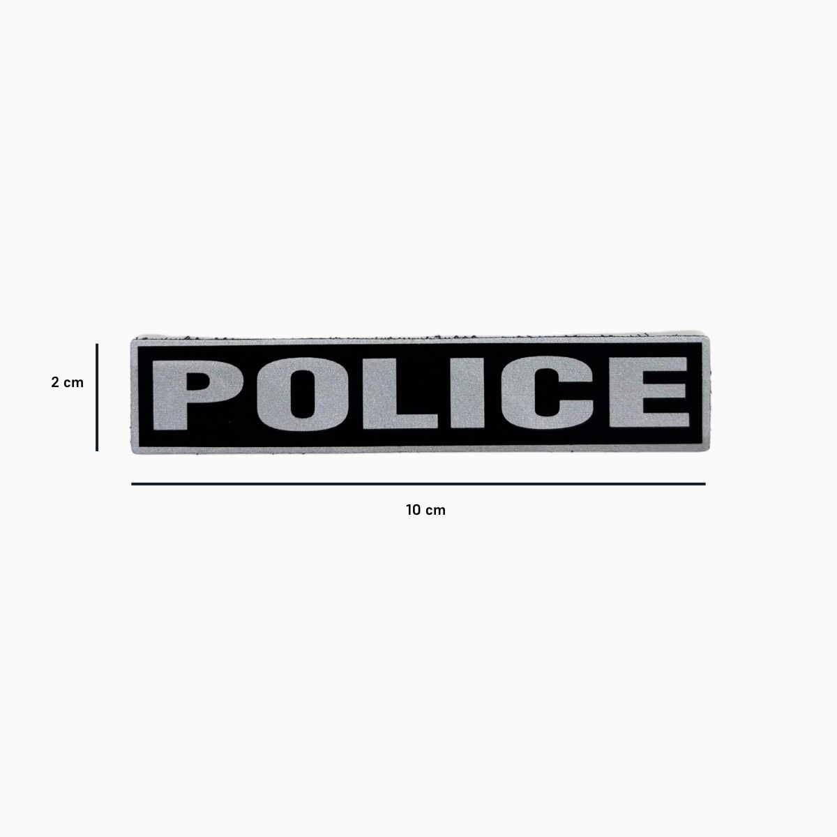 • Impression POLICE rétro réfléchissante gris sur fond noir.