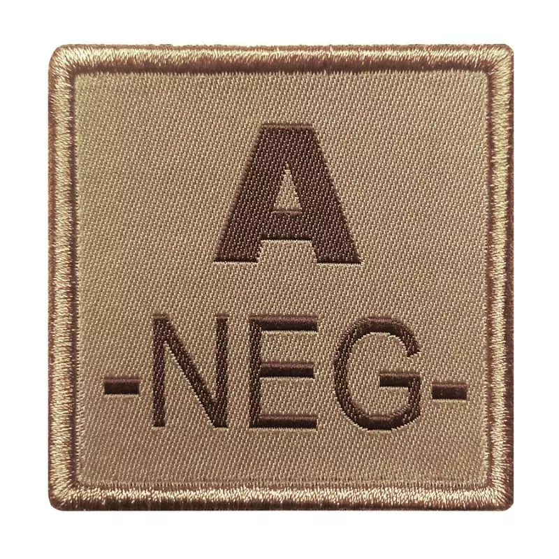 Patch groupe sanguin A NÉGATIF format carré, à placer sur vos sacs à dos ou veste munis de panneaux autoagrippant.