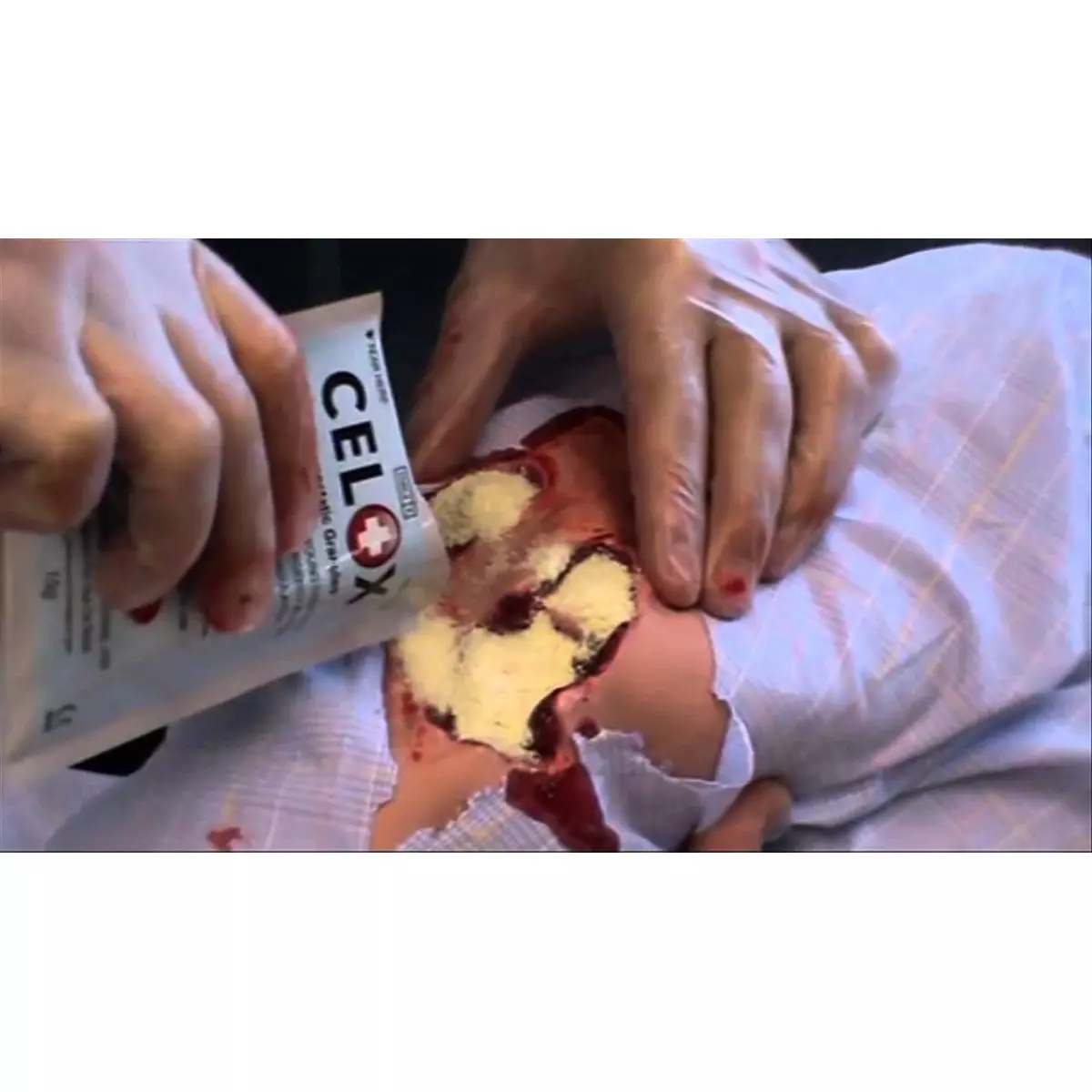 Le Celox se mélange au sang pour former un gel résistant en moins de 30 secondes, formant ainsi un caillot à la forme de plaie et limite ou arrête l'hémorragie. Les testes menés montrent l'efficacité du Celox même en situation d'hypothermie ou en présence de produits anticoagulants.