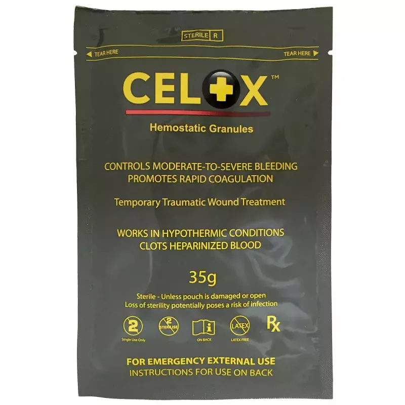 Le Celox est un produit hémostatique d'urgence. Il est conçu pour stopper rapidement les hémorragies même très importantes.
