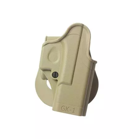 Ce holster rigide fabriqué par IMI Défense, ajoute à son design, confort et solidité grâce au polymère. Holster en "One Piece", le holster est directement moulé avec le paddle. Se met uniquement à la ceinture. La rétention se fait par frottement grâce à la visse de réglage.