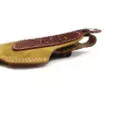 - Patte de sécurité en cuir brun pour une rétention de niveau 1 par bouton pression.