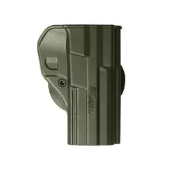 Ce holster rigide fabriqué par IMI Défense ajoute à son design confort et solidité grâce au polymère. Holster en "One Piece" le holster est directement moulé avec le paddle. Il se met uniquement à la ceinture. La rétention se fait par frottement grâce à la visse de réglage.