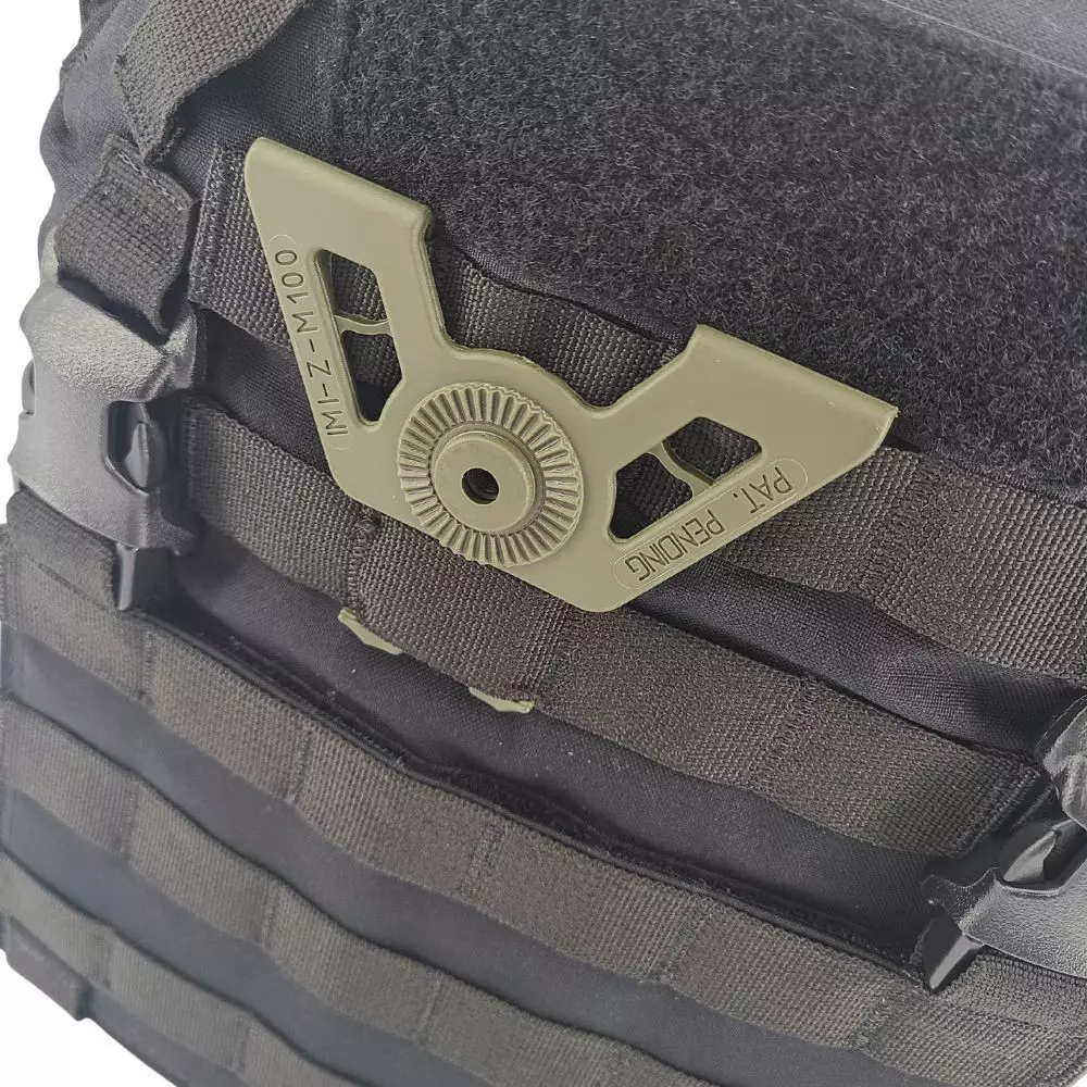 - S'appose sur l'équivalent de 3 rangées de MOLLE.