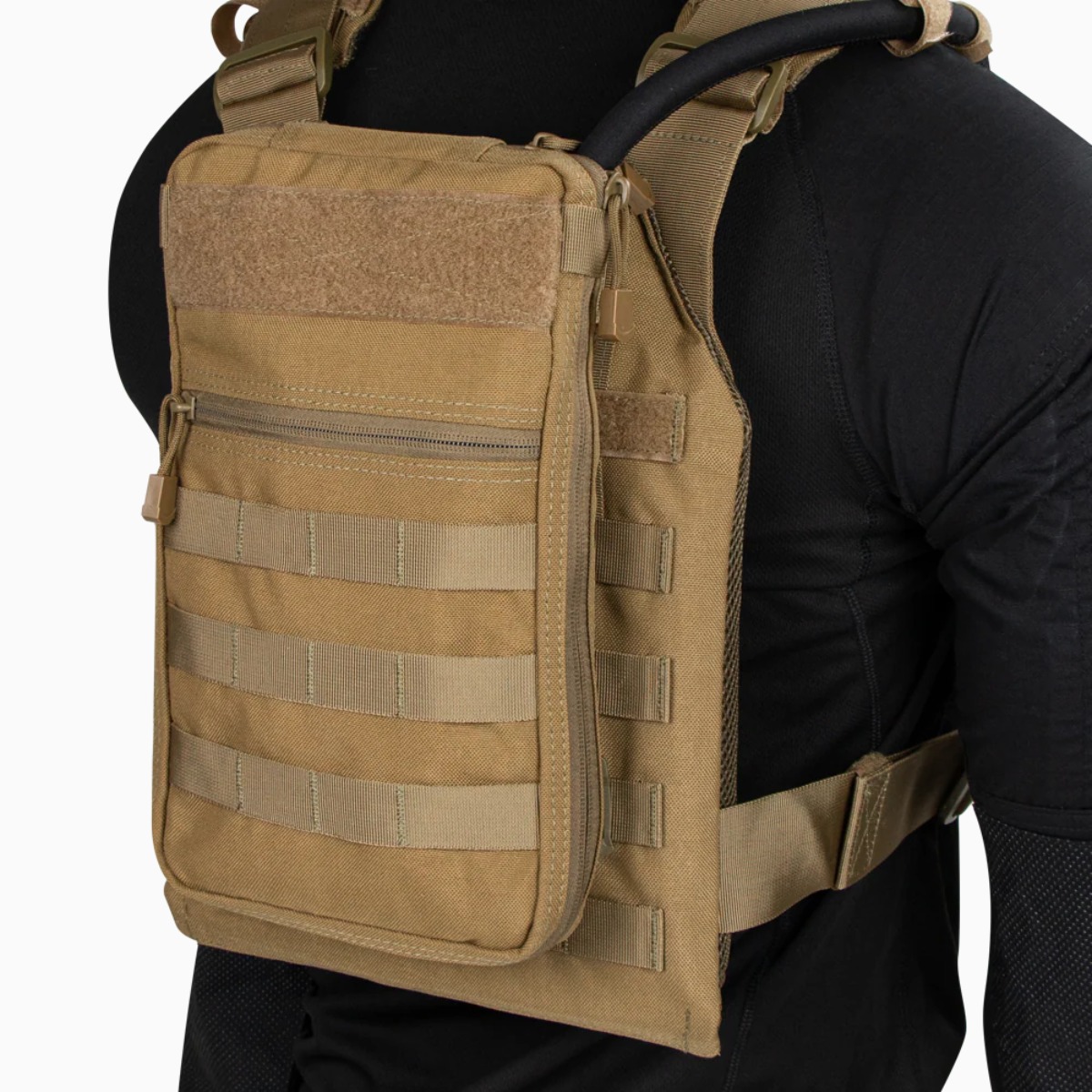 Grâce à son design clamshell, l’accès au réservoir d’hydratation est rapide et intuitif. Une poche externe zippée permet de transporter de petits accessoires, tandis que les sangles MOD incluses assurent une intégration directe sur un porte-plaques ou un gilet tactique.