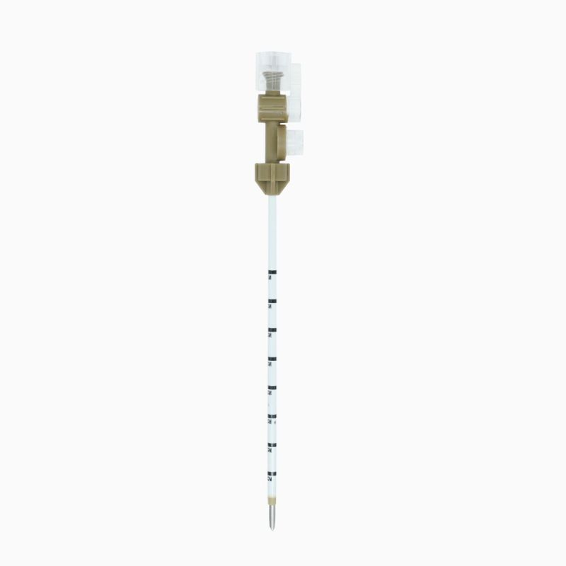 - Une fois l'aiguille retirée, le cathéter restant est constitué d'un matériau flexible et résistant à la corrosion, avec une pointe souple pour minimiser l'impact potentiel sur les tissus.