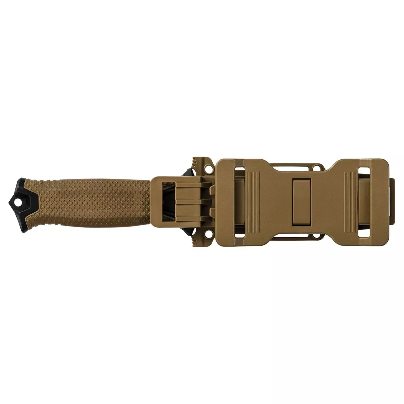 Couteau lame fixe fourni avec un étui offrant de multiples positions de montage.