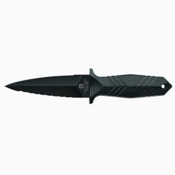 Sa lame symétrique à double tranchant (lisse + serrations) offre une efficacité maximale sur tous types de matériaux : sangles, câbles ou textiles techniques. Sa forme en dague garantit une pénétration optimale et une utilisation instinctive, quelle que soit la prise en main.