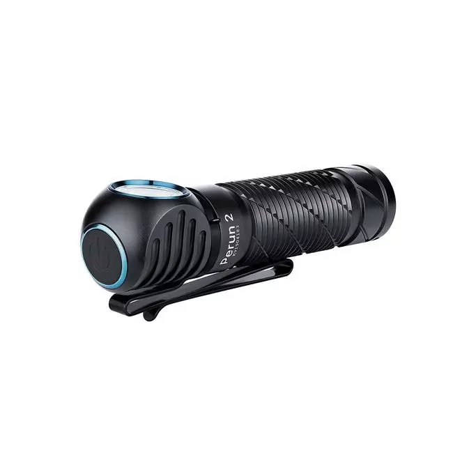 La lampe Perun 2 propose un éclairage à angle droit par rapport au corps de celle-ci, cette particularité permet de la monter en lampe frontale sur un bandeau de tête élastique.