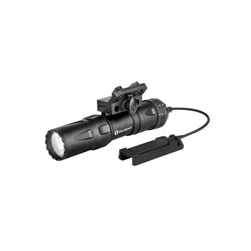 Avec un système de montage à fixation et libération rapide, l’installation et le démontage peuvent être fait en une seconde. L'interrupteur déporté permet une utilisation tactique.
