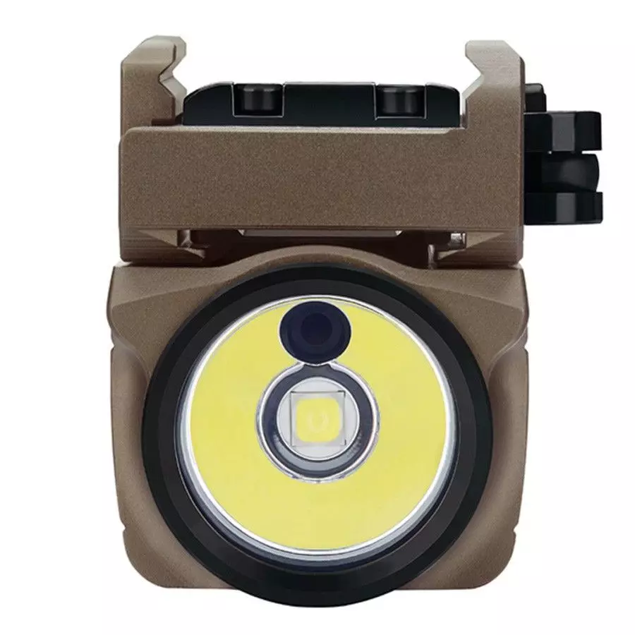 La lampe BALDR MINI est la combinaison ultra-compacte d’une lampe LED et d’un laser vert. Deux types d'adaptateurs sont fournis pour s'adapter aux rails Glock et Picatinny. Dotée d'un rail coulissant réglable, la lampe peut être facilement ajustée vers l'avant ou l'arrière dans la position ergonomique qui vous convient le mieux. Malgré sa taille compacte, son faisceau lumineux développe 600 lumens, et son laser vert reste très visible de jour comme de nuit pour des ciblages précis et rapides.