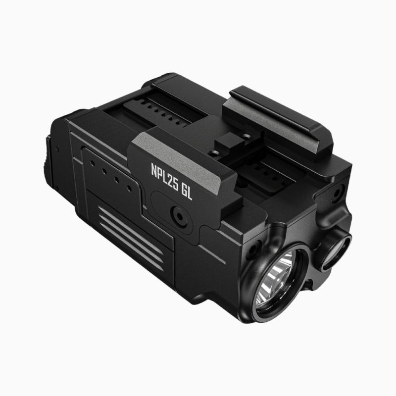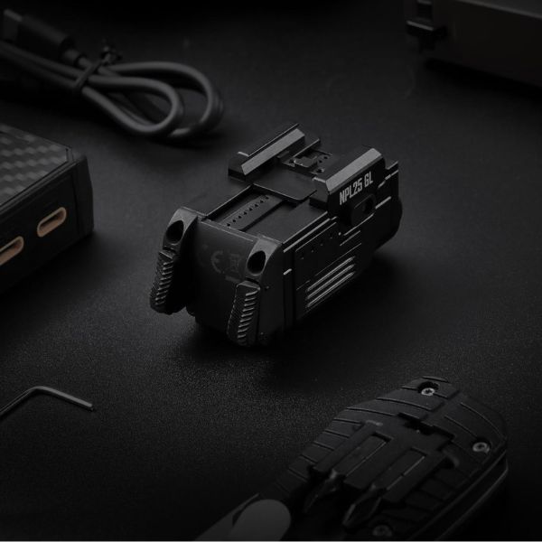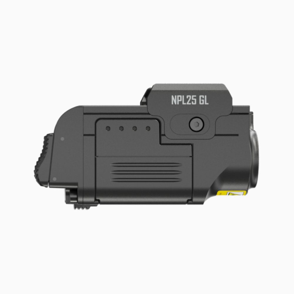 La lampe laser Nitecore pour arme NPL25GL est conçue pour s’adapter aux Glock et à d’autres armes de poing grâce à son montage Picatinny (MIL-STD-1913). Avec ses 900 lumens et une portée de 216 mètres, la NPL25GL éclaire les situations les plus exigeantes. Sa LED UHi 25 de dernière génération garantit une luminosité optimale.