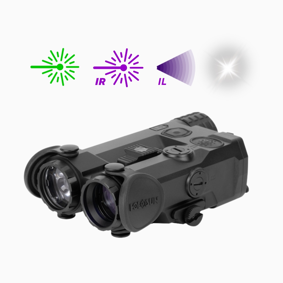 Le Holosun IRIS-GR4 est un module quad-fonction combinant un laser vert visible, un laser IR classe 1, un illuminateur IR VCSEL 60 mW et une lampe blanche de 1000 lumens. Conçu pour accompagner les opérateurs de jour comme de nuit, il permet une transition instantanée entre engagement diurne, tir sous NVG et éclairage tactique puissant.