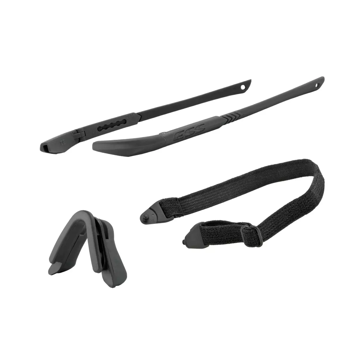Ensemble monture ICE NARO™ de couleur noire et complet (sans verre) comprenant la pièce nasale, les branches et l'élastique de rétention.