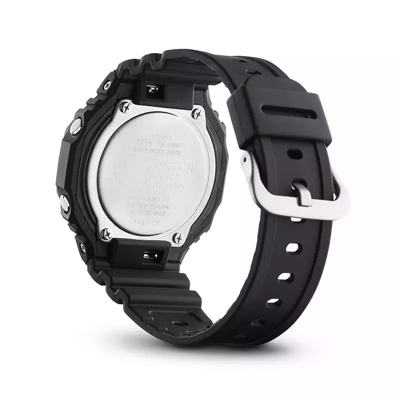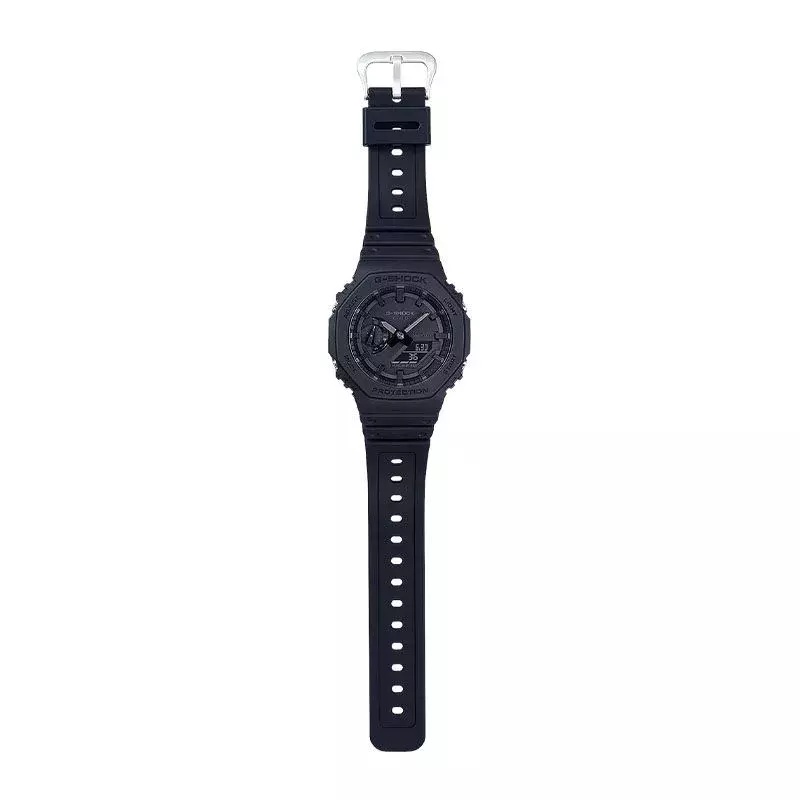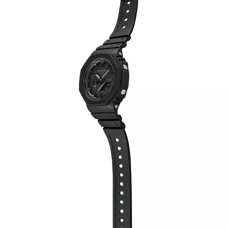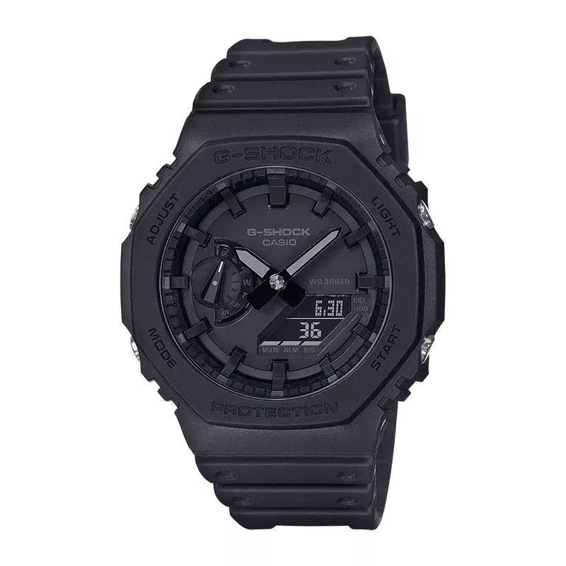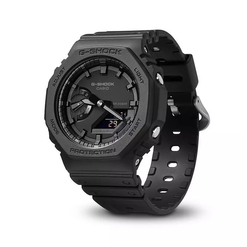 Fine et légère, la montre-bracelet analogique et numérique G-SHOCK Classic GA-2100 arbore un look "Phantom" par son design Full Black.