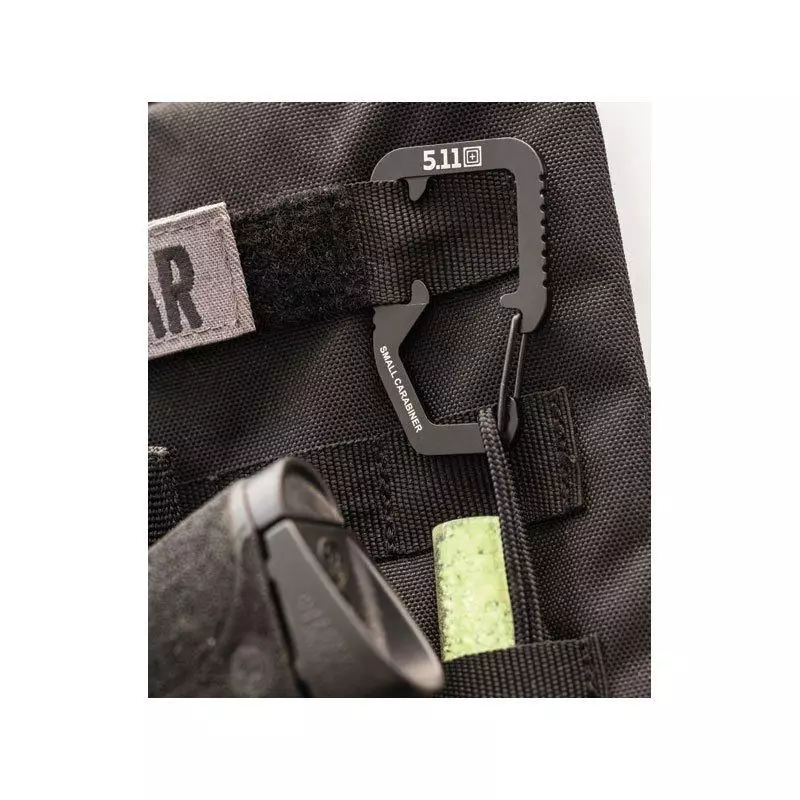 Mini mousqueton en acier inoxydable, spécialement conçu pour être placé sur passants MOLLE et y rester droit (également compatible passants Hexgrid®).
