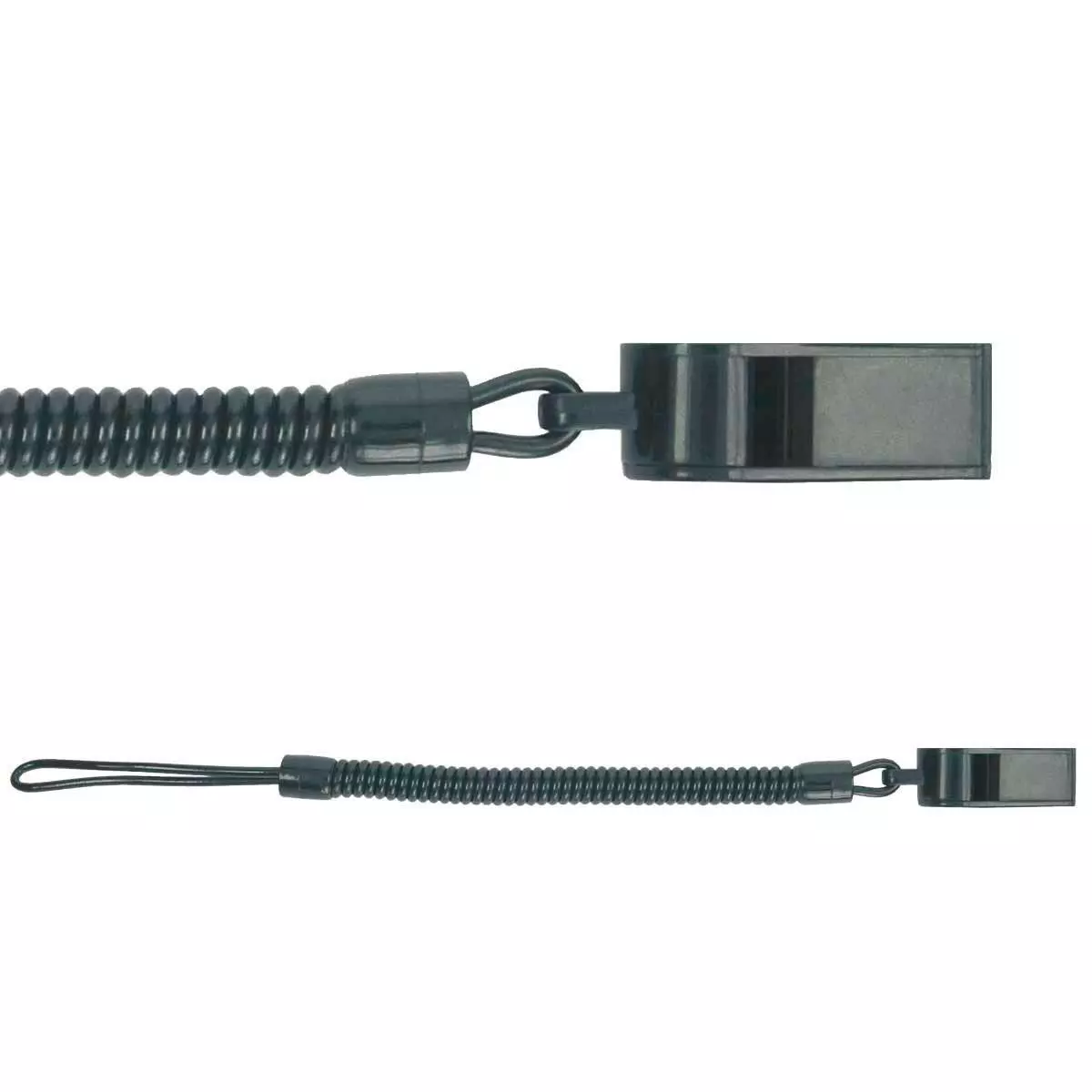Sifflet monté sur dragonne, spécialement conçu pour ne pas sonner aux portiques de sécurité. Efficace et solide.