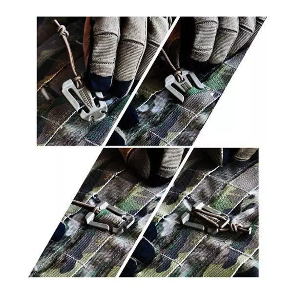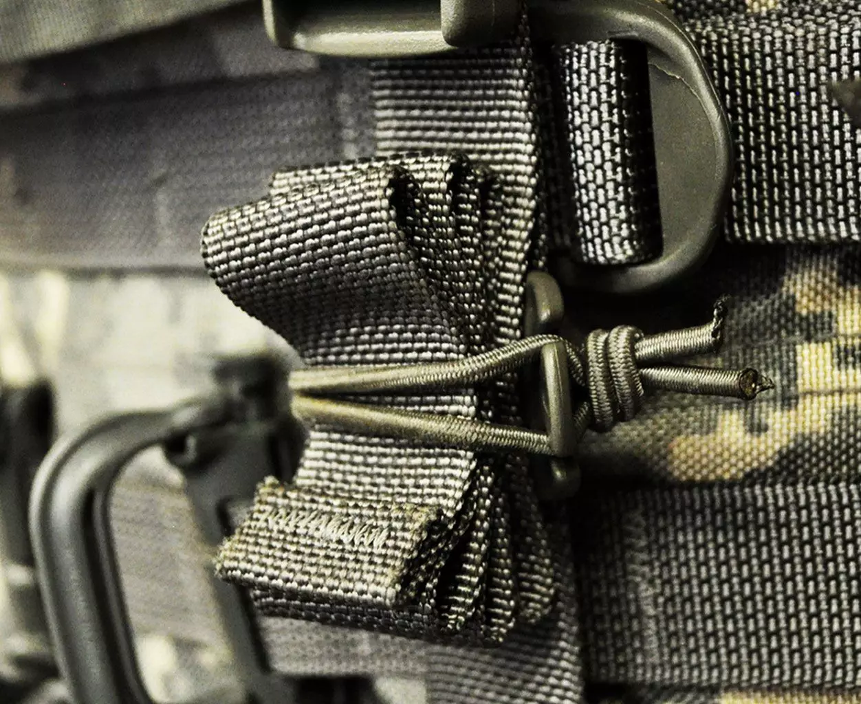 Système de fixation en polymère pour passants MOLLE, idéal pour enrouler vos sangles trop longues ou fixer votre tuyau d'hydratation.