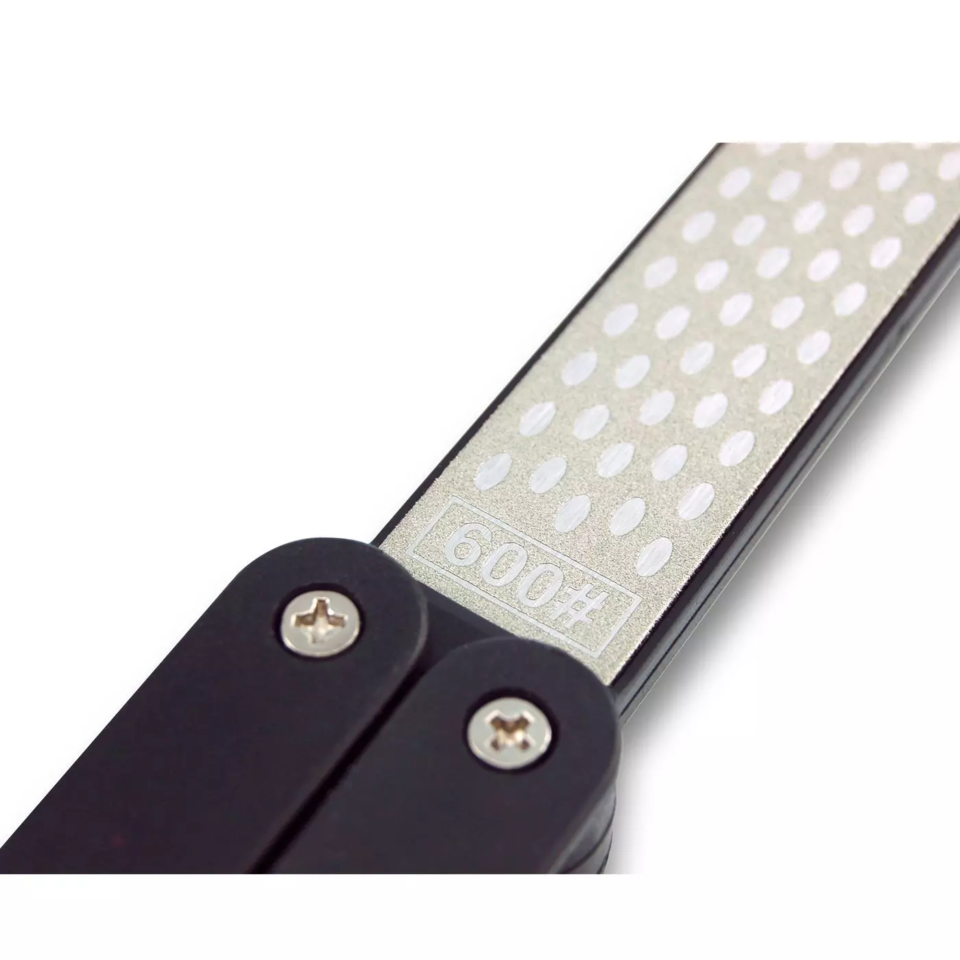 D’une efficacité redoutable, cet affûteur est particulièrement efficace pour refaire un tranchant impeccable sur toutes vos lames de couteaux et notamment celles des couteaux fermants de haute dureté. Cet affûteur possède 2 faces. La première face est destinée à faire une ébauche avec un gros grain (#360), l’autre permet de finir le travail avec un grain fin (#600) pour un résultat parfait. Pour un résultat optimal, conservez les pentes d’usinage de l’affûtage d’origine.