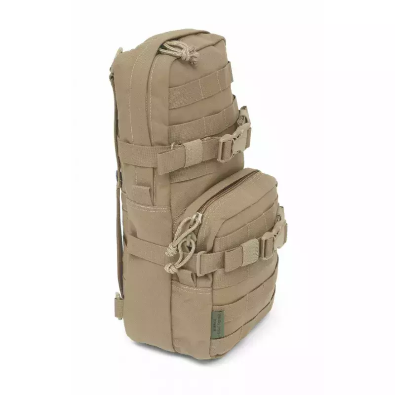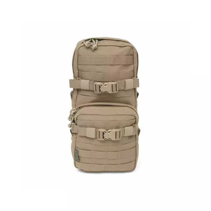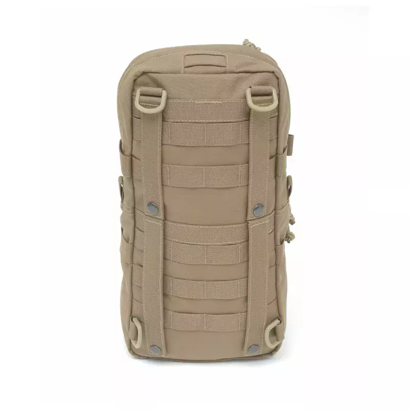 Emplacement intérieur pour y mettre une poche d'eau. De nombreux passants MOLLE en extérieur pour attacher d'autres poches.