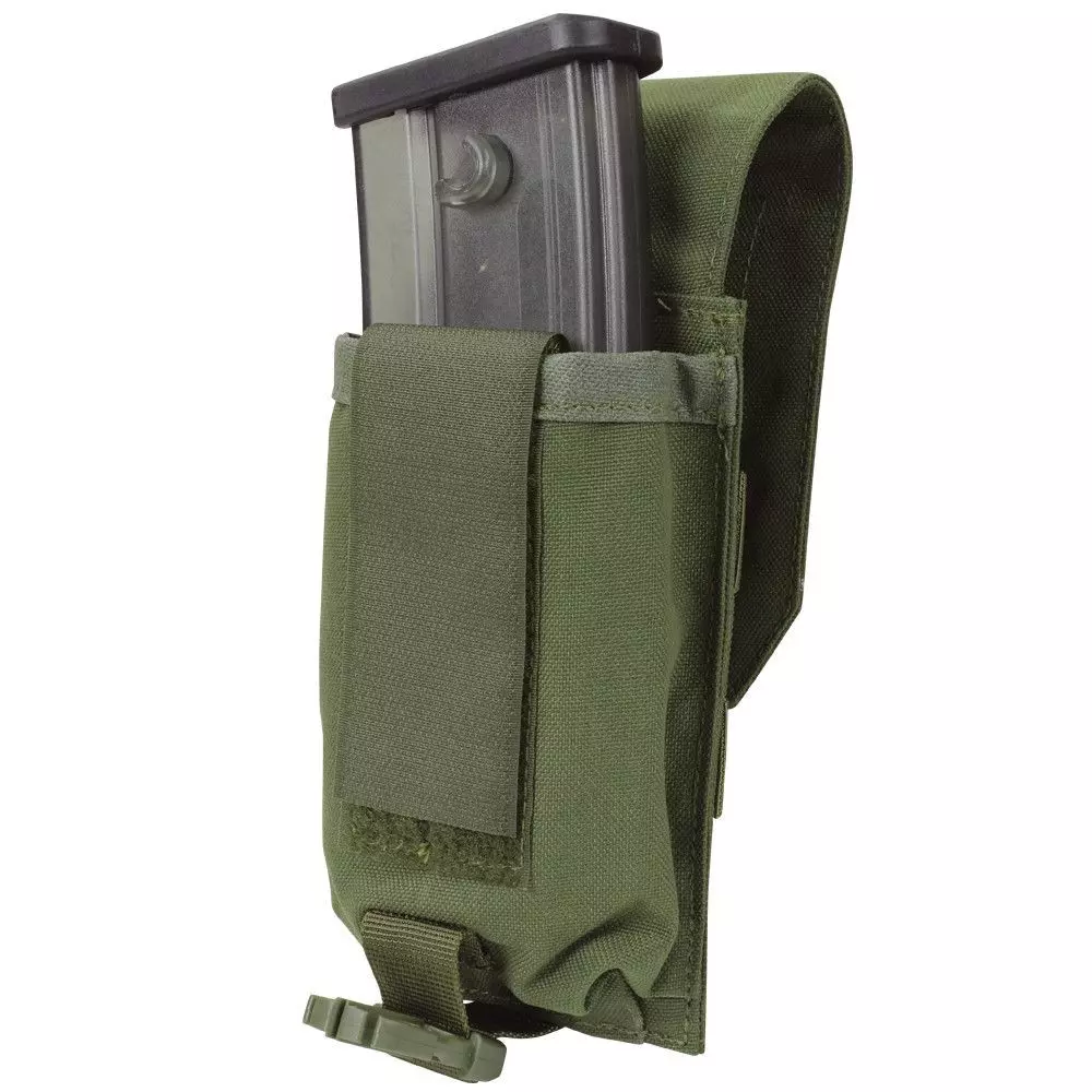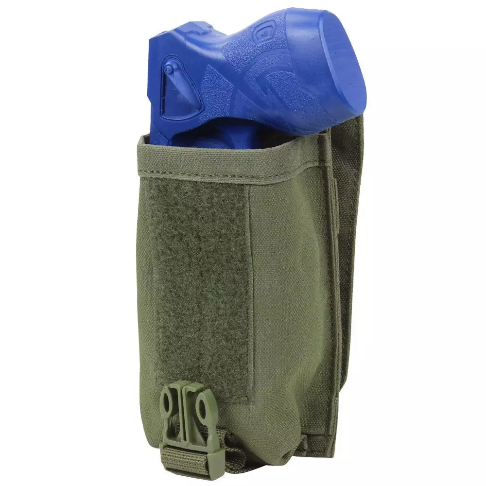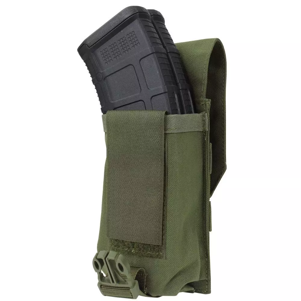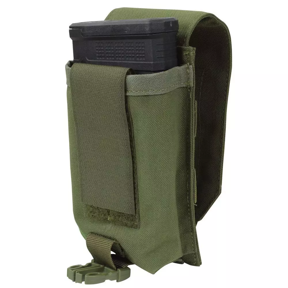 Cette poche peut contenir un chargeur type fusil ( AR10 / LR-308, M14, FAL, AK, M4 / M16, HK417 / 416, G36, etc. ), un taser ou une grenade.