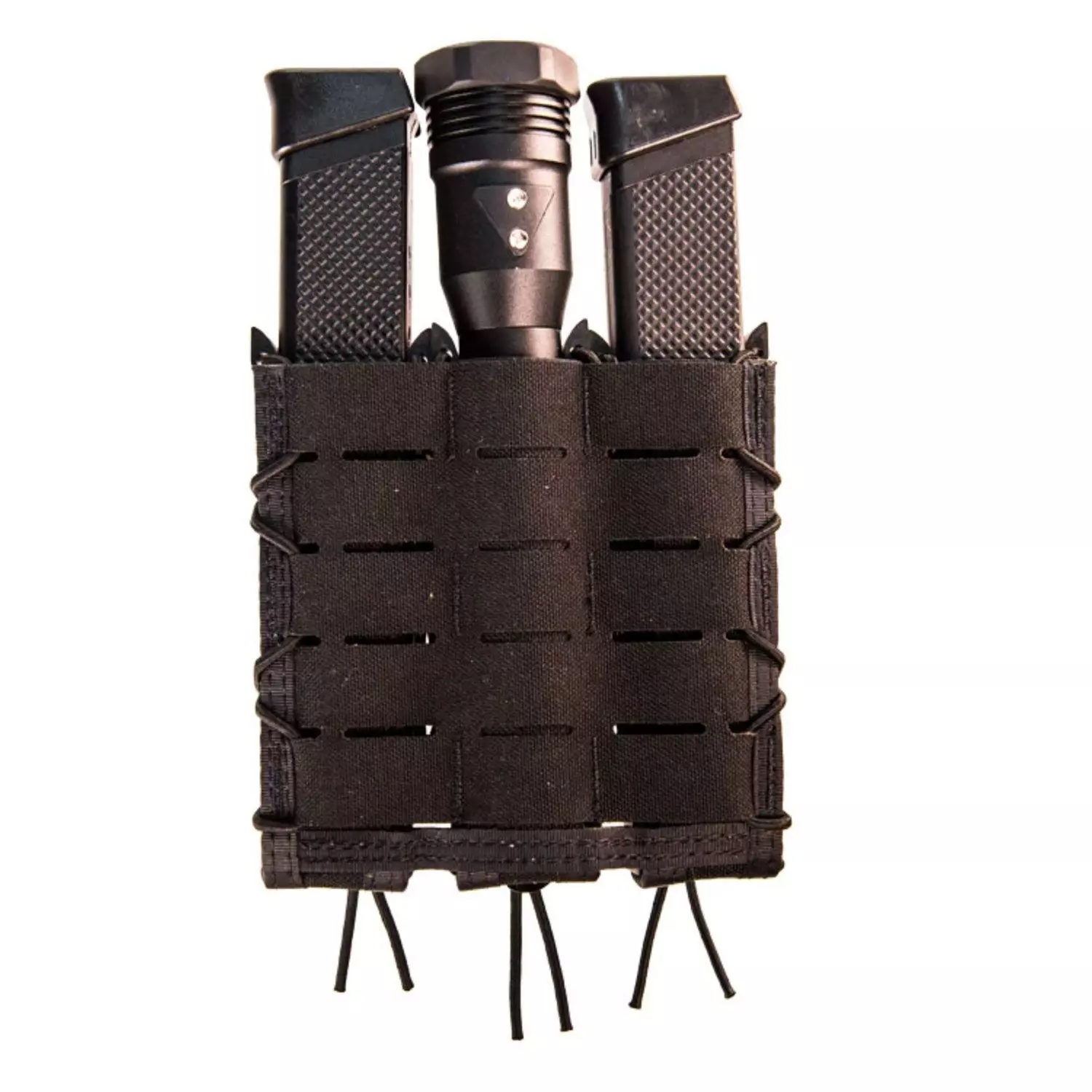 Cette triple poche est conçue pour contenir 3 chargeurs type PA de grande capacité, bâton, lampes et autres objets de tailles similaire.