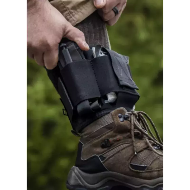Poche de cheville permettant d'emporter les fournitures essentielles pour stabiliser une blessure par balle.