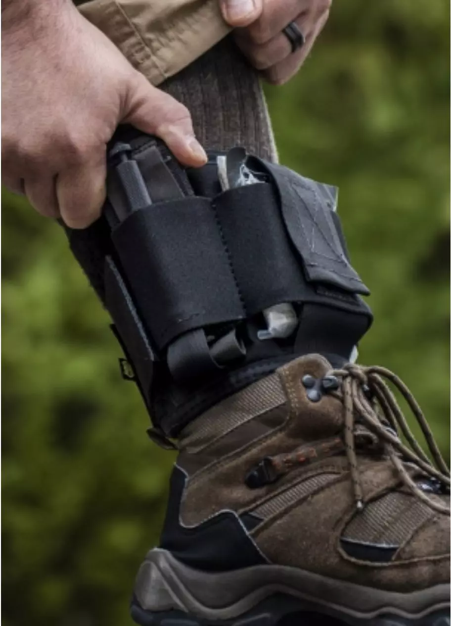 Poche de cheville permettant d'emporter les fournitures essentielles pour stabiliser une blessure par balle.