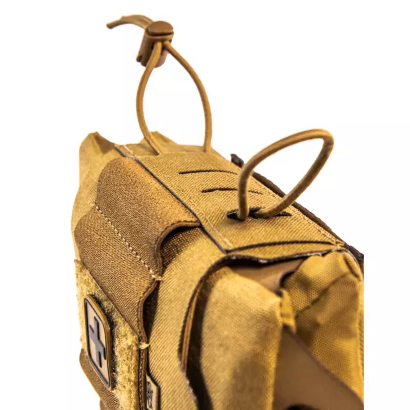 Poche médicale à déploiement rapide composée de deux éléments, totalement ambidextre vous pouvez tirer la poche de chaque côté du fourreau. L'intérieur se déploie pour laisser l'accès à votre équipement médical organisé grâce à divers boucles et élastiques.