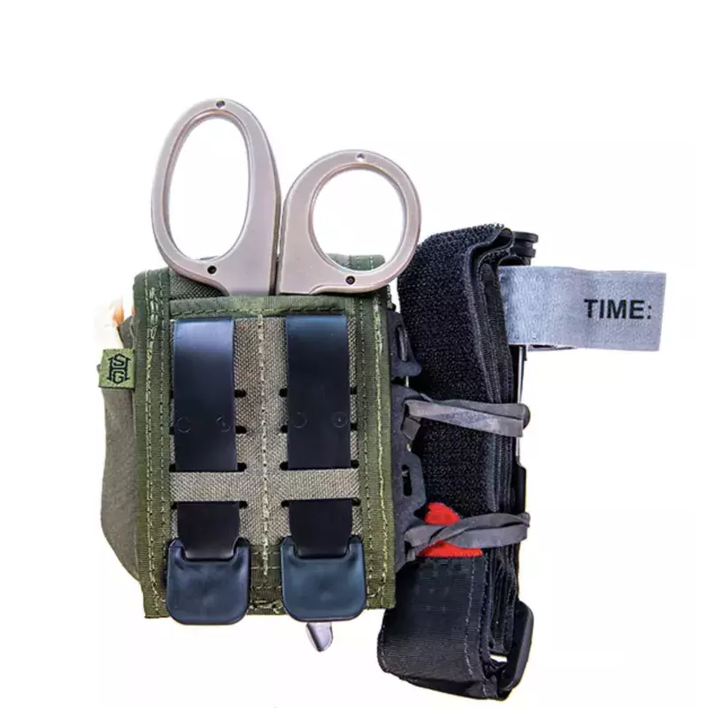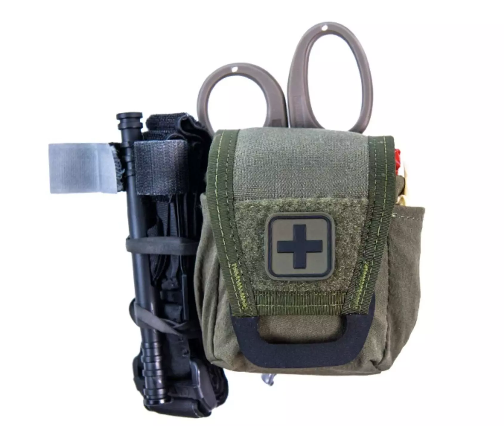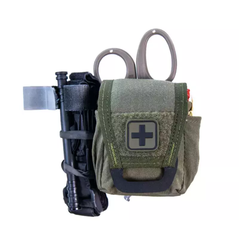 Le produit a été pensé pour le traitement d'une blessure par balle, idéalement conçue pour accueillir en même temps : un pansement thoracique, un pansement compressif 4", des ciseaux, 2 paires de gants en nitrile et une gaze. Cette poche peut s'adapter à d'autres accessoires et configurations.