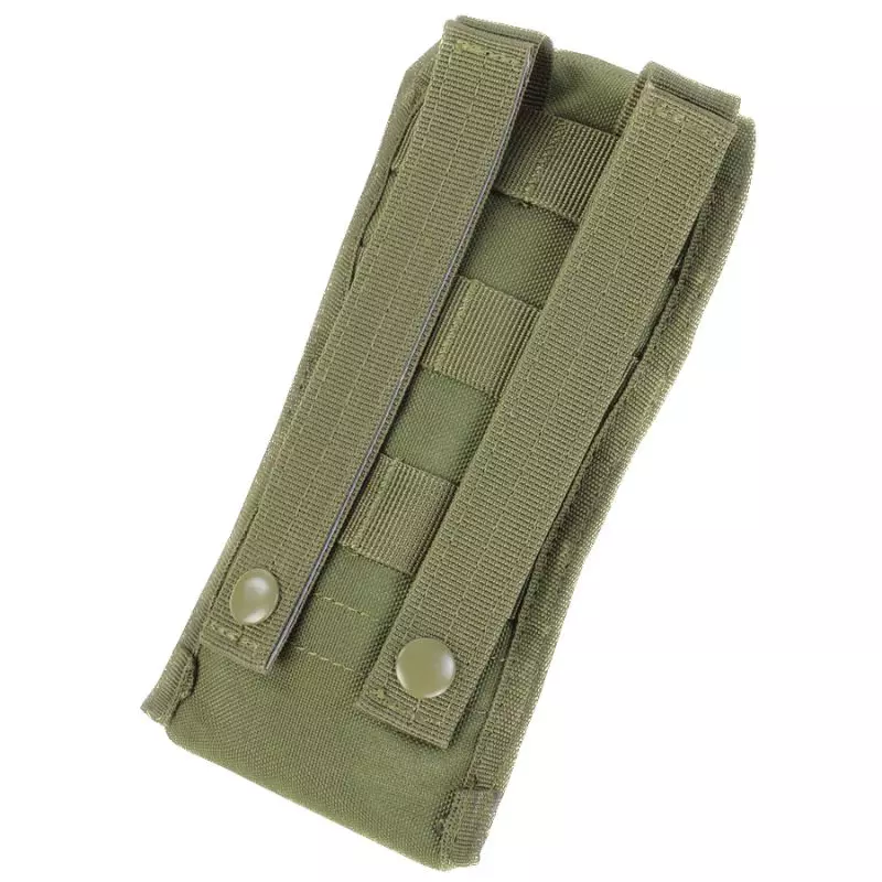 Poche radio fixation MOLLE , rétention par élastique et rabat Velcro.