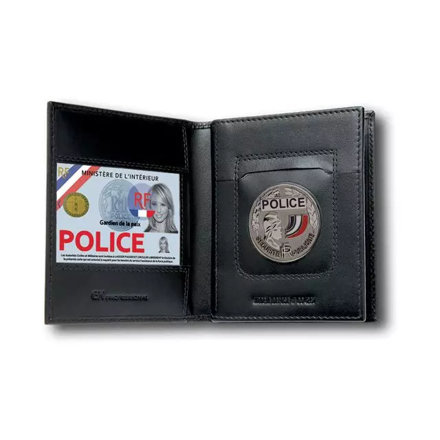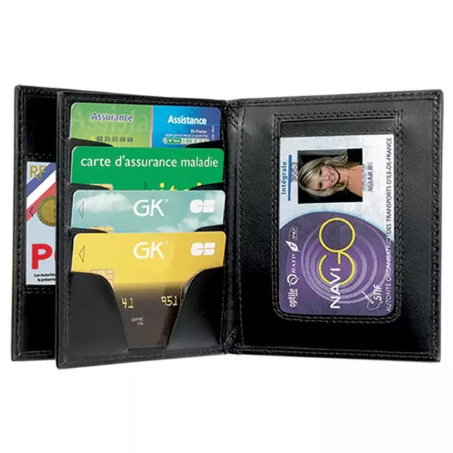 Ce porte-cartes 3 volets permet le port d'une médaille, d'une carte professionnelle et d'une carte de transport type Navigo ainsi que 4 fentes pour diverses cartes type CB.